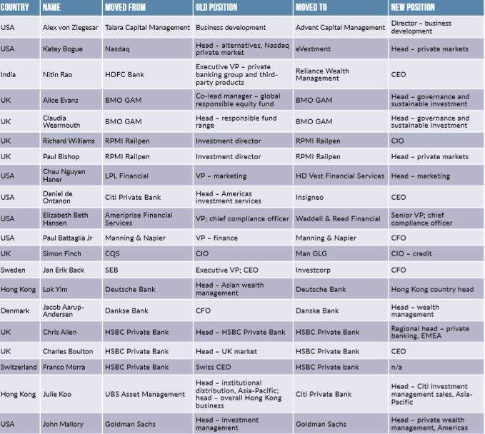 Private Banker International (PBI) lists the people moves that were featured in the May 2018 issue of PBI.