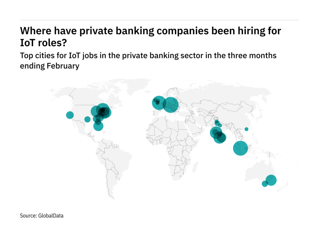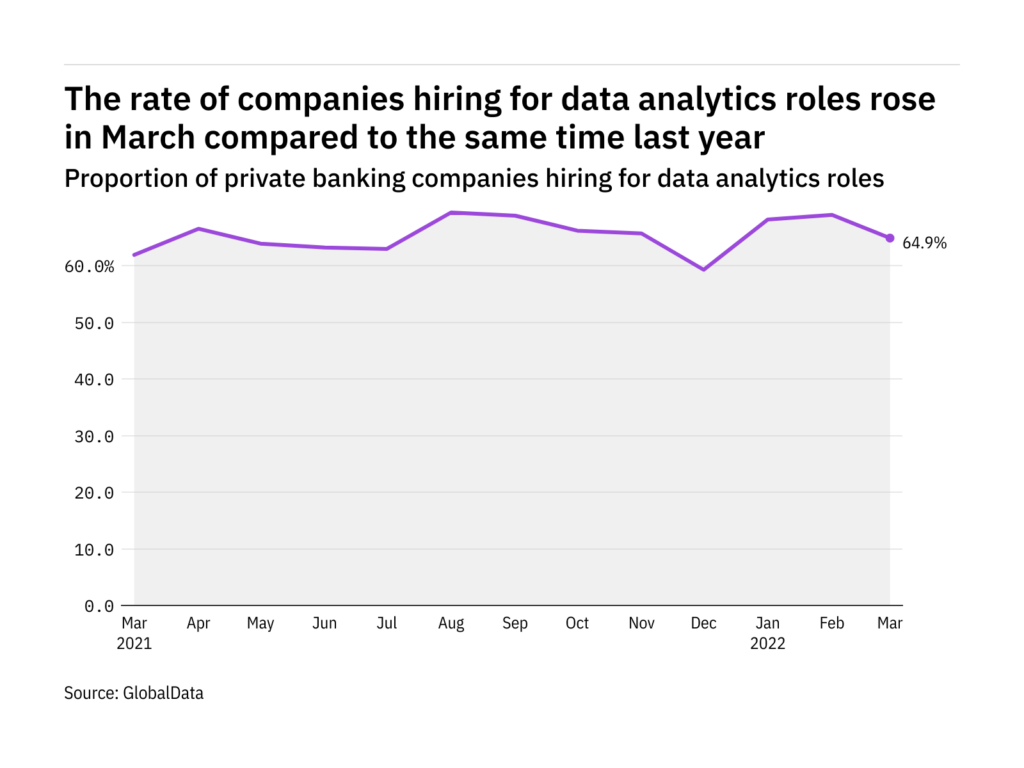 Data analytics hiring levels in the private banking industry rose in March 2022