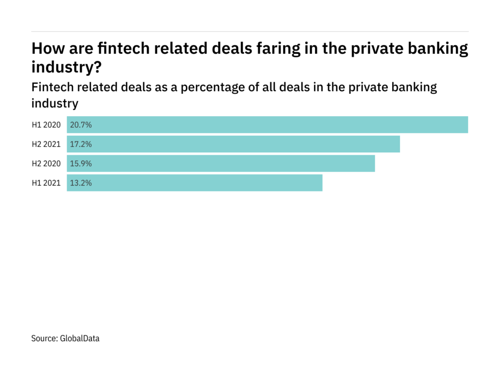 Deals relating to fintech in the private banking sector have seen an increase of 7.7% from H2 2020 to H2 2021, an analysis of GlobalData’s deals database reveals.