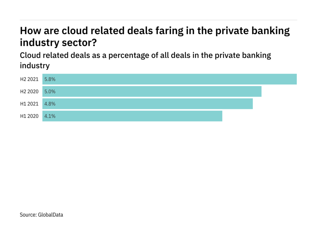 Deals relating to cloud in the private banking sector have seen a decrease of 11.8% from H2 2020 to H2 2021, an analysis of GlobalData’s deals database reveals.