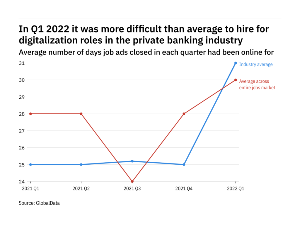 The private banking industry found it harder to fill digitalization vacancies in Q1 2022