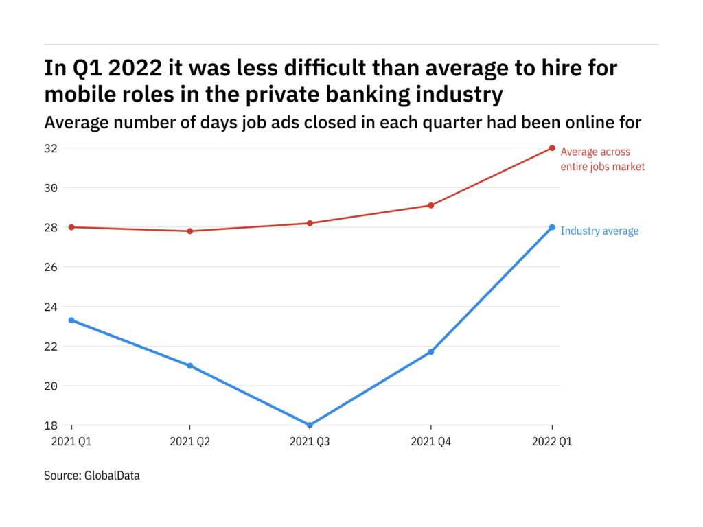 The private banking industry found it harder to fill mobile vacancies in Q1 2022