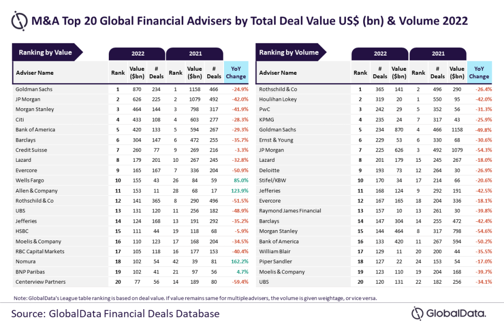 Top 10 M&A financial advisers in financial services sector for Q1-Q3 2022 revealed