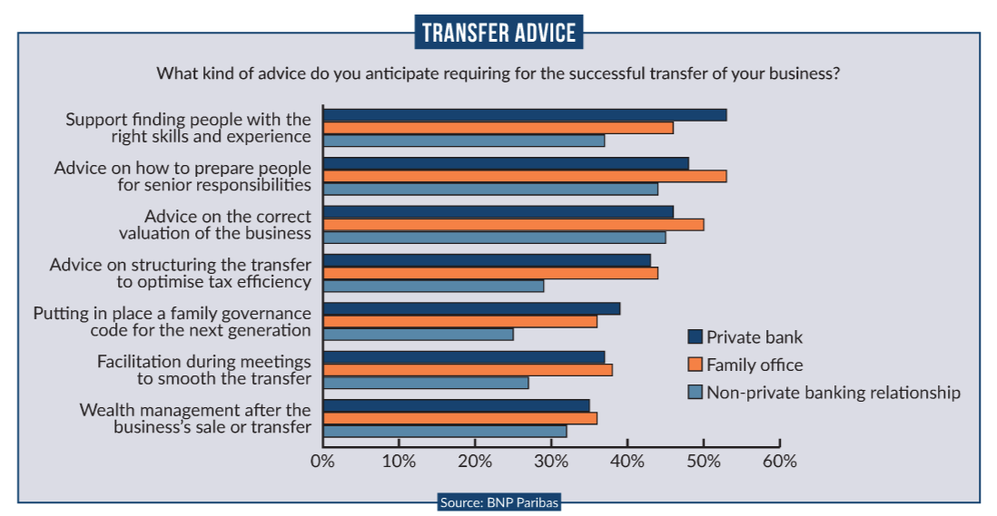 Fortunately, most HNWIs and UHNWIs realise that they may need some advice. In a survey by Singapore Management University and the Family Business Institute of 290 family businesses across Asia, 39% said they need good advice on succession planning and 40% said they need advice on corporate or family governance, while only 10% needed advice on investments.