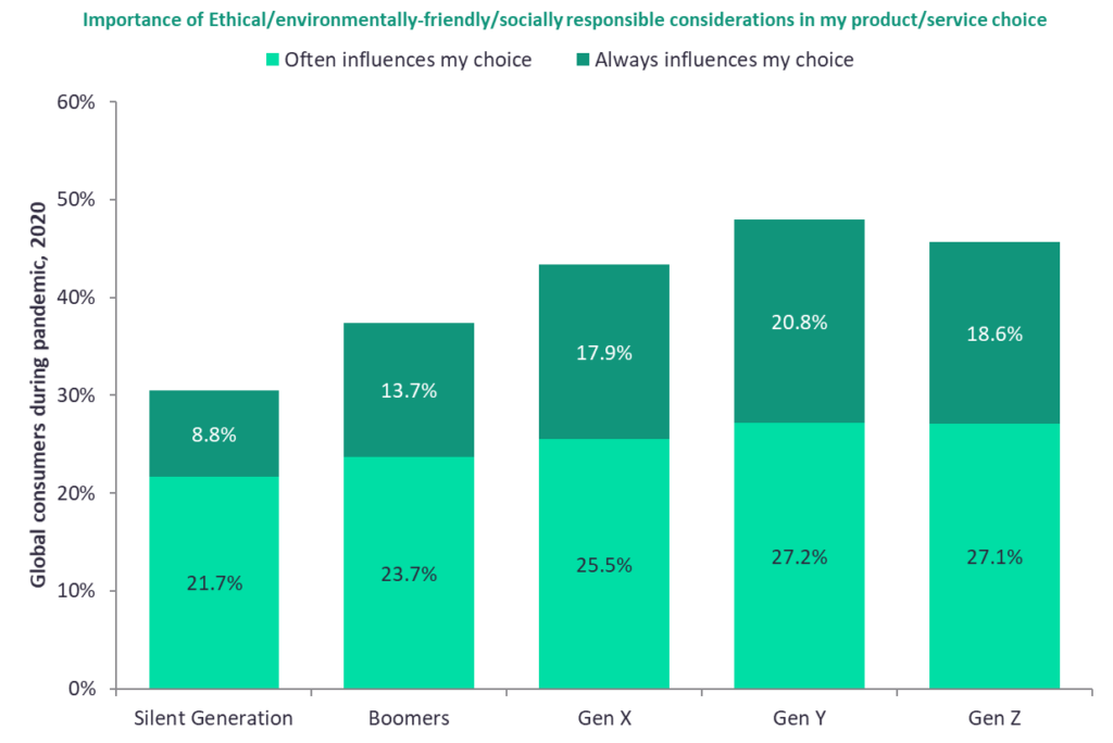 Once again, the desirable Gen Z and Millennials segments, in particular, have been driving forces behind sustainable investment uptake, and our data shows that younger generations regard social and ethical investment options as notably more important than the Baby Boomer segment.
