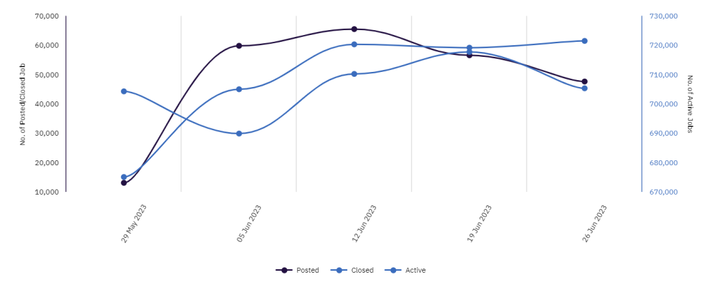 In terms of job posts closed, June also witnessed a slight decline from May which recorded 230,192 job posts closed, to 228,024 job posts closed.