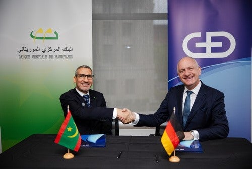 As an alternative to cash, G+D and the Central Bank of Mauritania are working together to develop and launch a possible Central Bank Digital Currency (CBDC). At the Spring Meetings in Washington, Wolfram Seidemann, CEO of G+D Currency Technology, and Mohamed Lemine Ould Dhehby, governor of the Banque Centrale de Mauritanie, signed a contract to that purpose.