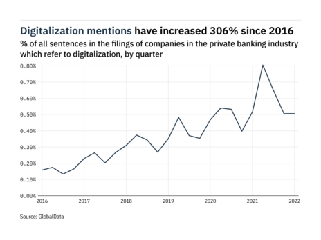 Mentions of digitalization within the filings of companies in the private banking industry were 306% higher between April 2021 and…